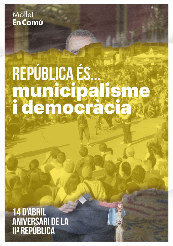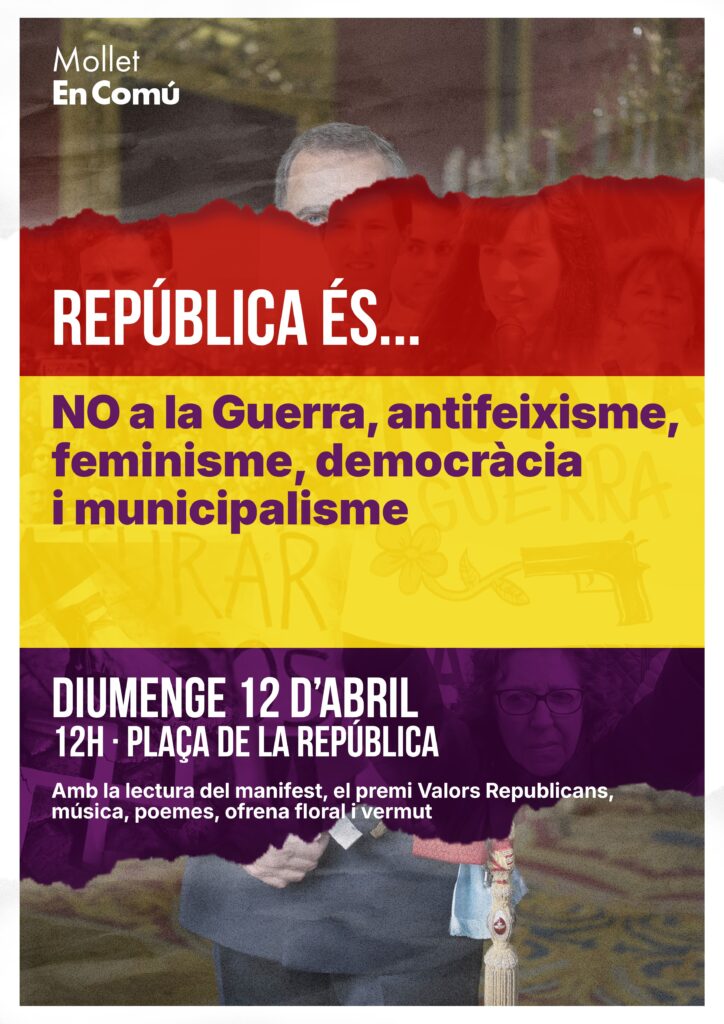 Mollet en Comú celebrarà un any més l’acte d’homenatge a la 2a República, una trobada festiva i reivindicativa que tindrà lloc el pròxim diumenge 12 d’abril a les 12 h a la Plaça de la República de Mollet del Vallès.